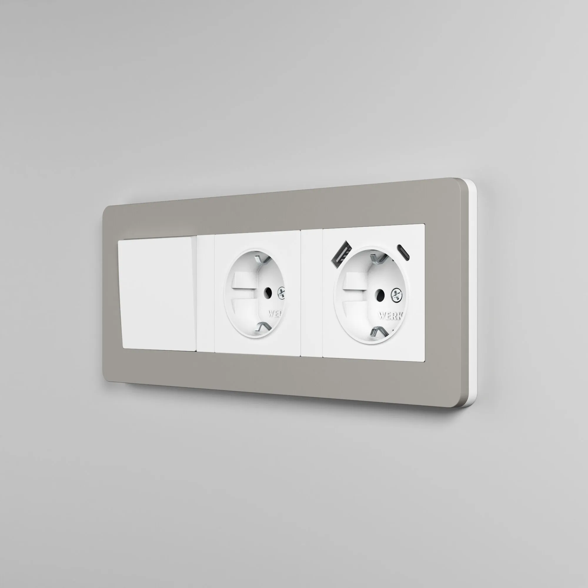 Трехпостовая рамка Split дымчатый/белый soft-touch W0033067 от Werkel — сдержанная элегантность и тактильный комфорт в современном интерьере